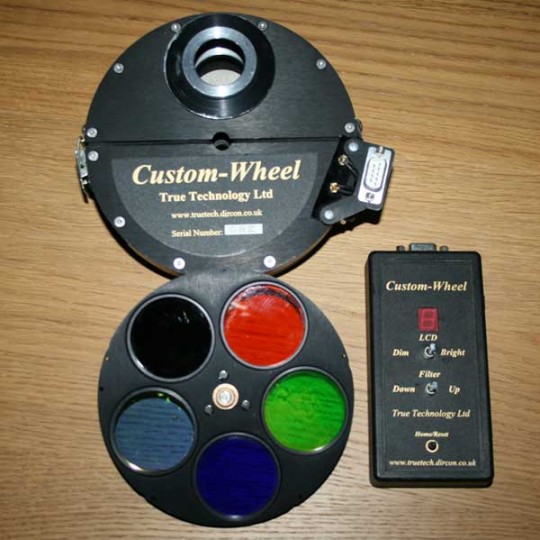 Vendo ruota portafiltri motorizzata della True Technology a 5 posizioni per filtri in cella (con filetto) da 2", completa di centralina per controllo remoto con driver ASCOM tramite porta COM direttamente da PC. Controllabile tramite il suo programma proprietario o tramite MaxIm DL o Astroart per riprese automatizzate. Tramite la centralina è possibile anche un controllo manuale. Sono compresi i cavi originali; 1 tra ruota e centralina, 1 cavo tipo telefonico a 4 fili tra centralina e PC, 1 adattatore da COM a RJ45 per il cavo tipo telefonico. Filtri in foto NON compresi.
