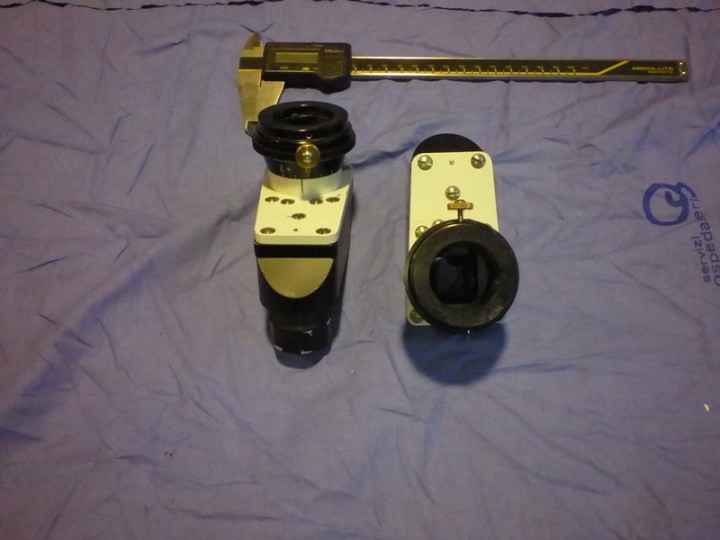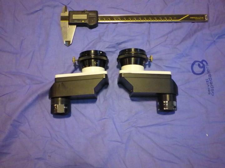 Romboid prism intubati alluminio (409 gr cad) adatti per la costruzione di binoscopi. Portati al diametro di 31,8 mm con passaggio luce di 21 mm. Uno dei due ha il focheggiatore fisso e l'altro si sposta fluido e preciso. Come si evince dalle foto uno ha una macchia nera sul bordo nel passaggio luce. Usati per costruire un binoscopio con ottimi risultati ora che sono passato ad altro li riimmetto sul mercato. 170 euro la coppia spediti.