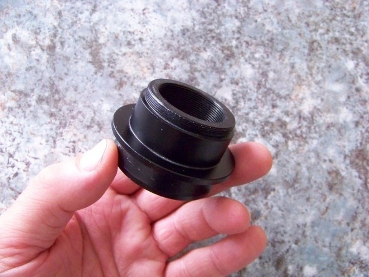 vendo adattatore in alluminio anodizzato nero: la porzione maschio ha un diametro utile di 2 pollici e un profilo a coda di rondine; dalla parte opporta è presente un portaoculari da 31.8 con in testa una filettatura T2 per collegare al fuoco diretto una fotocamera. Spessore complessivo circa 35 mm, a battuta dal lato T2 è di circa 20 mm (compresa la filettatura). Chiedo 23 euro compresa spedizione, pagamento solo su postepay. Cieli sereni...