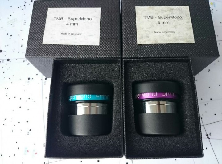 For sale in excellent, like new condition TMB SuperMono 4mm and 5mm eyepeices, with original boxes and front and back covers!