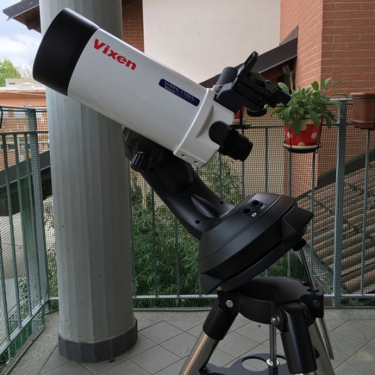 Apertura da 110mm (4.33 pollici) - f=1035mm - f/9.4. Privo della lastra corretrice anteriore si acclimata molto velocemente ed è dotato di uno slide mirror integrato che permette senza la necessità di acquistare ulteriori accessori di collegare contemporaneamente un oculare per la visione e una macchina fotografica per la ripresa. Il telescopio, estremamente leggero, è basato su uno schema ottico Cassegrain modificato esclusivo di Vixen in grado di restituire stelle incredibilmente puntiformi al pari di strumenti di classe superiore.