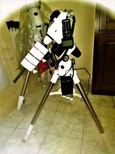 Vendo montatura Bresser EQ5 exos 2 goto, con treppiede, contrappesi, tastiera tipo autostar #497 con cavi, contrappesi da 5 kg cad.