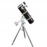 Telescopio Sky-Watcher Newton Explorer diametro 200mm e lunghezza focale 1000mm (f/5) su montatura equatoriale alla tedesca Sky-Watcher EQ5 dotata di treppiede d'acciaio regolabile. Il migliore strumento manuale della gamma di telescopi completi Sky-Watcher.